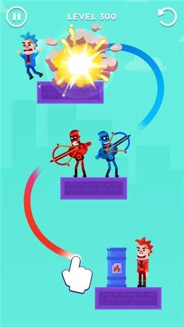 这是一款别具一格的益智射箭闯关游戏,它创新性地把经典射箭玩法和烧脑关卡设计结合起来,玩家得亲手画出箭头的飞行路径,让箭矢精准地射中目标才能过关。