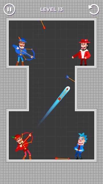 这是一款趣味十足的轻量级解谜闯关游戏,玩家需要通过规划各类箭矢的飞行轨迹,在不同关卡中精准击败所有对手。