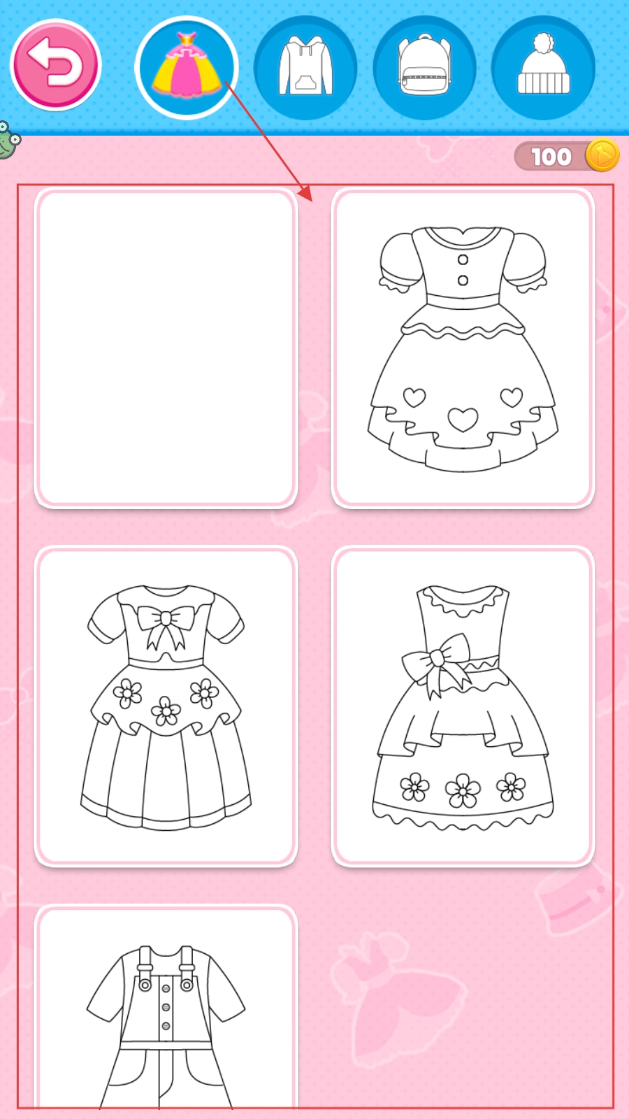 2、选择下方喜欢的服装图案,进入涂色创作环节。