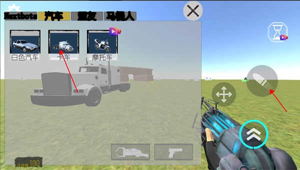 2、点击盒子,选择一个NEXTBOT,然后点击一下右边的子弹按钮。