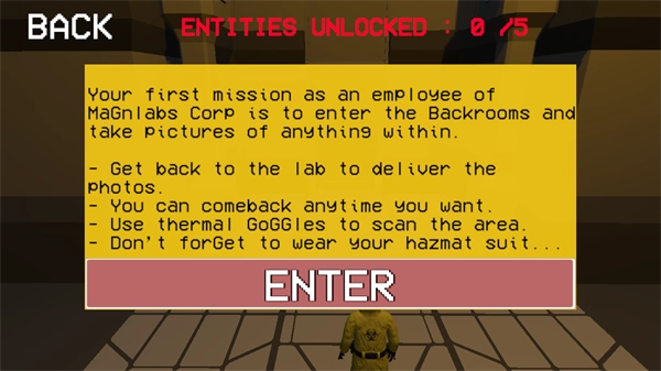 这是一款主打恐怖氛围的冒险游戏,玩家将踏入后室领域,在这个独特空间里可以与其他伙伴一同组队探索。