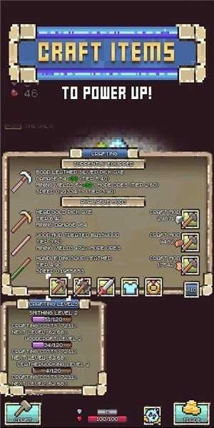 只需点击“开始挖掘”或选择“自动挖掘”与“闲置”模式。在《Idle Pocket Crafter:Mine Rush》中,你可以自由选择玩法:点击挖掘、持续挖掘,或是开启闲置模式。深入幽暗矿井,收集稀有矿石;砍伐树木,化身伐木达人;追捕凶猛敌人,用他们的战利品打造强力装备!