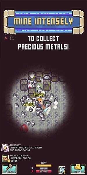 退出英雄可获取声望货币,该货币能用于购买强大且永久的挖掘升级,比如闪电般快速的采矿能力。闲置的大量设备与武器,只需轻轻一点就能处理。