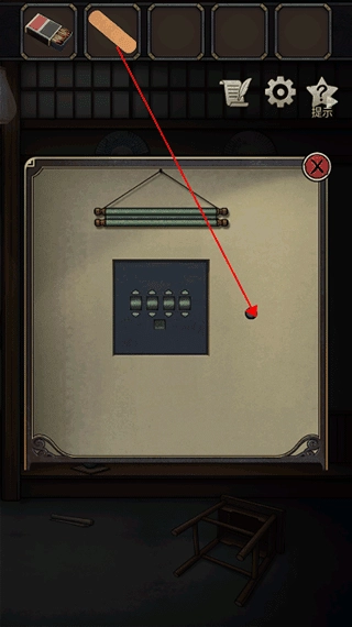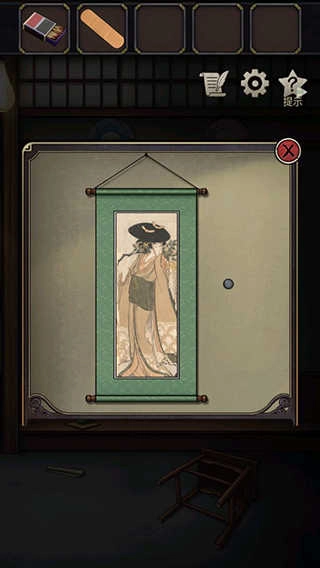 3、接着点击墙后的壁画,按下旁边的按钮,再用创可贴蘸取旁边的灰尘。