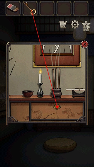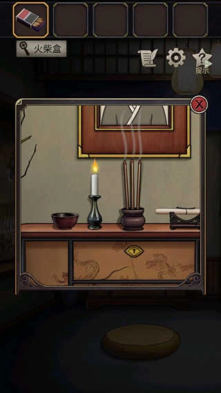 1、游戏启动后,按照提示点击桌子,能在桌面上找到火柴,用它来点燃蜡烛。