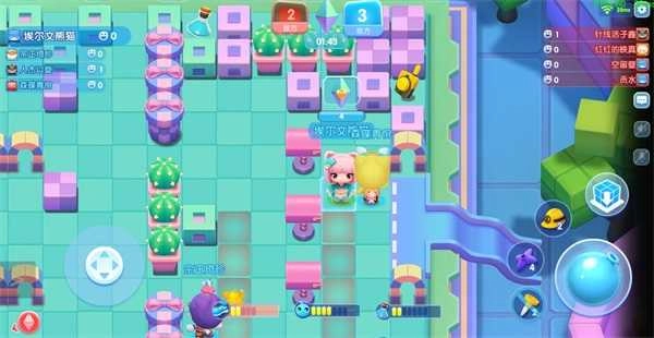 《全民泡泡超人》延续了经典的泡泡对战玩法,操作上采用双轮盘设计,左手负责角色移动,右手则可操控泡泡放置、道具使用与技能释放。玩家通过布置泡泡来击败对手,同时还新增了百人演习、糖果乱斗等一系列创新游戏模式。