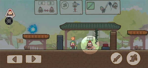 2、通过左下角的方向键来控制移动,点击小刀图标即可发起攻击,点击小人图标能够完成跳跃动作。