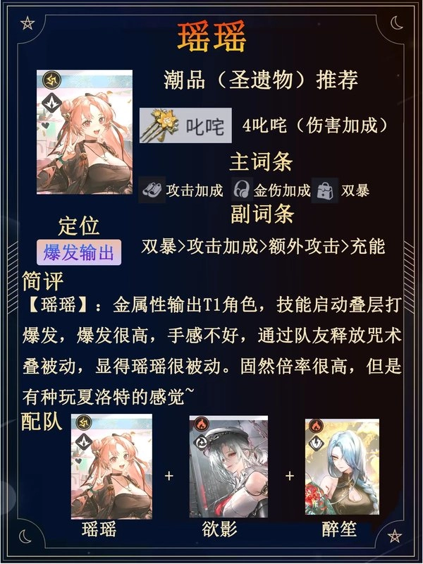 瑶瑶+欲影+醉笙可组成过渡阵容