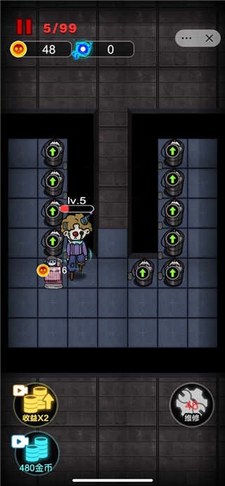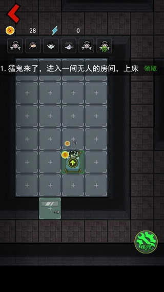 5、睡觉时会生成金币,利用这些金币可升级门、床以及装备武器;