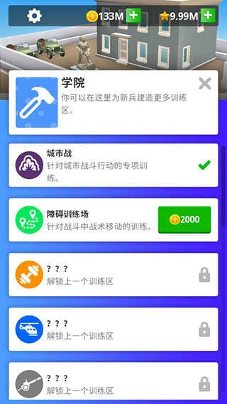 2、在游戏的初始阶段,玩家会得到一座尚未开发的军事基地,通过使用金币能够对基地里的各类设施进行升级。