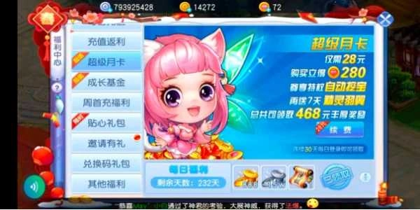 购买月卡后,每天都能领取888金币,算下来半个月就能积累2.6万金币,性价比相当不错。而且,月卡还会附赠其他福利。