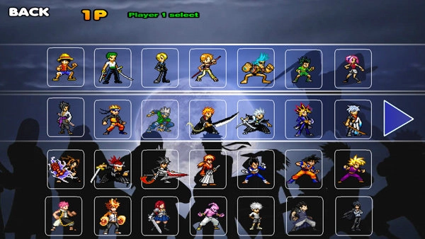 4、游戏设有单人及双人两种模式,就拿单人模式来说,你能够选择路飞、鸣人或者死神这类经典角色来参与战斗;