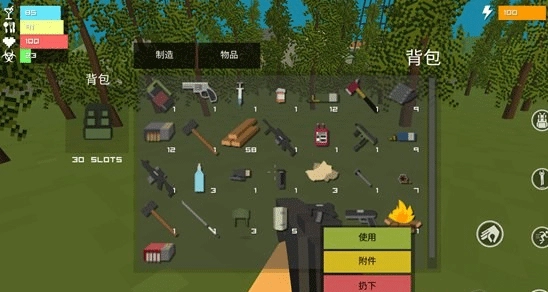 1、开放世界——游戏构建了一个自由度极高的像素世界,不同区域分布着不同类型的僵尸。