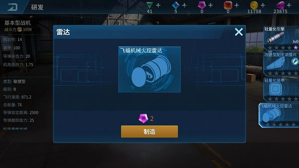每架飞机都配备了引擎、机翼、装甲和雷达这4类关键装备,每一类都能为飞机带来独特的性能提升。