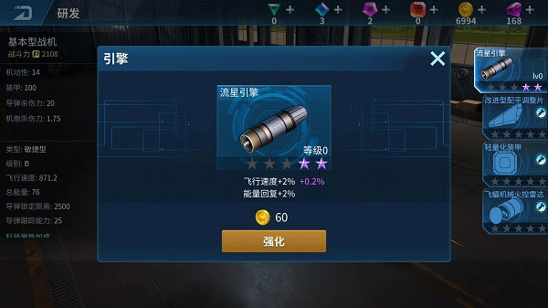 在研发界面里能够对飞机的装备和科技开展升级操作,以此来增强飞机的整体属性。