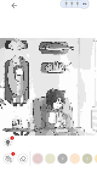4、把设备里的任意图片转化为像素化样式,再借助应用内的数字填色工具为它注入新的活力。