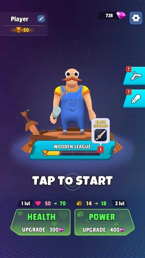 2、每次胜利后都能得到一定数量的钻石奖励,这些钻石可用于提升角色能力。其中“POWER”指攻击力,“HEALTH”指生命值(也就是血量)。要合理分配资源,让角色变得更强。
