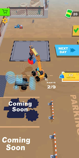 5、当你收集到足够数量的部件时,就能回到初始位置附近解锁新载具。完成每日任务后,点击“Next Day”即可进入下一天,当然,你也可以选择先清理完当天所有垃圾再继续操作。