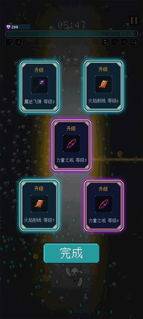 3、游戏过程中,装备升级是不可或缺的环节。每当弹窗弹出时,一定要认真挑选想要强化的技能效果,如此方能更充分地展现流派的长处。