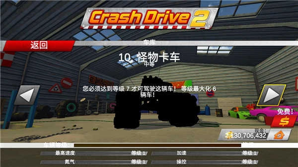 2、接着点击车库图标进入车辆选择界面,选一辆你喜欢的座驾开启冒险之旅吧。