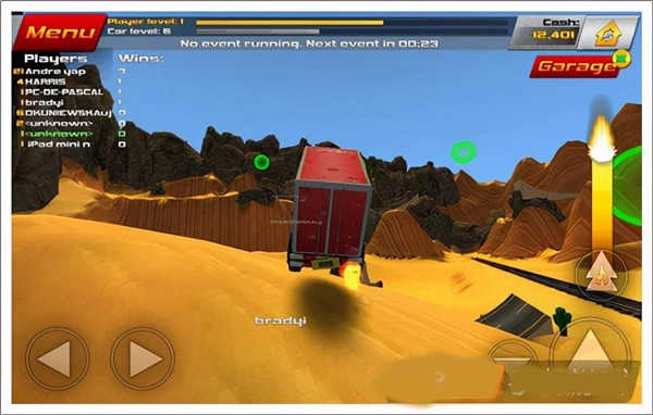 4、如下图所示:屏幕两侧配有简洁直观的操作按钮,只需轻轻点击,就能轻松操控车辆移动,还能完成各类惊险刺激的特技动作。