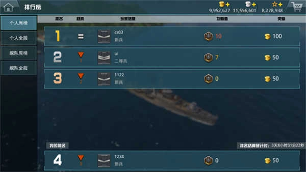 记录舰长每周的表现排名情况,通过每周的排名能够知晓自身的变化,并且名次越靠前,可获得的奖励就越丰厚。