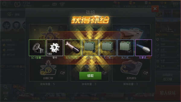通过配件箱和十连抽获得配件,合成配件加强战舰。