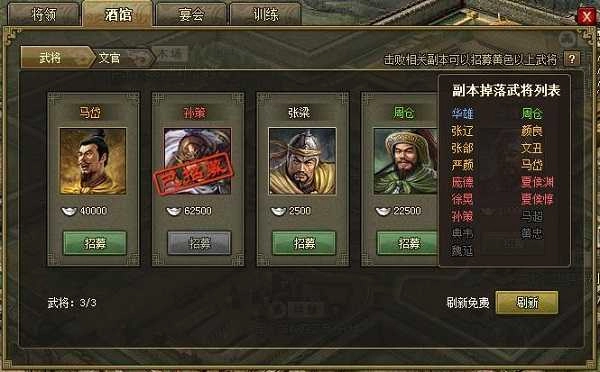 点击“酒馆”旁的问号,就能看到副本掉落武将的列表啦。是不是很惊喜呀?