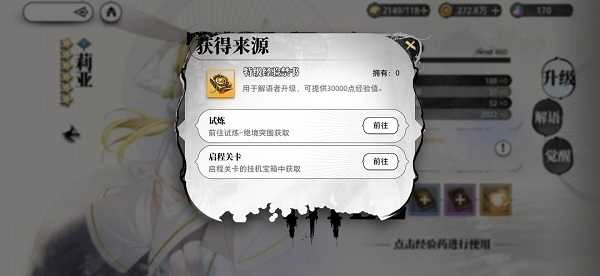 收集到的资源可以用来进行装入操作,之后还能开展升级、觉醒和解语这些功能。升级需要用到搜集来的手稿,手稿分为初级、中级、高级和特级,对应的经验点依次是100、1000、5000、30000。完成升级后,相关对象的攻击、生命力以及物理法术防御都会得到提升。