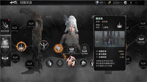 伊丝特的技能分为远程与近程武器两大类别。远程技能多为定点攻击,耐力消耗和冷却时间较短,不过伤害相对偏低,核心特点在于范围攻击与远程打击能力。这类技能在连招过程中视觉效果非常震撼,粒子特效漫天飘散,有着很强的观赏性。