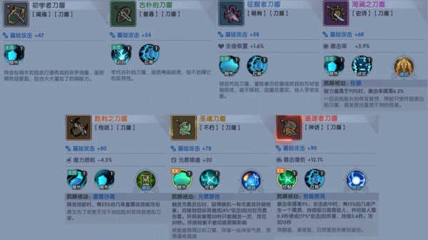 武器和圣物的品质从低到高分为:白<绿<蓝<紫<橙<红,品质越高,属性提升效果越显著。蓝色及以上品质的武器拥有额外的副属性效果,紫色以上则具备特殊专属被动效果。开局时优先选用高品质的装备,根据实际情况灵活调整。