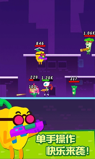 1、游戏里的射击英雄采用Q萌风格打造,配上卡通化音效,营造出轻松愉快的游戏氛围。