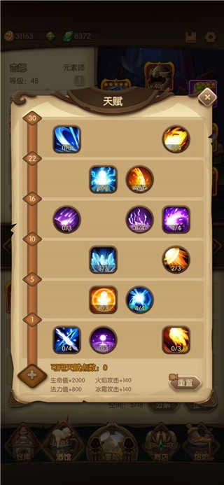 3、 法师:暴击属性很高,我主动点了冰盾和元素冲击这两个技能。目前法师是我玩过的角色里伤害最高的,暴击能打出1.32万的伤害,不管打什么基本都是一刀秒杀,就连第10关的关底boss也能一刀解决。