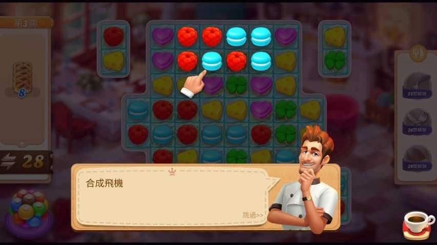 所有食材都需要通过三消搭配制作,为游戏增添更多趣味性。