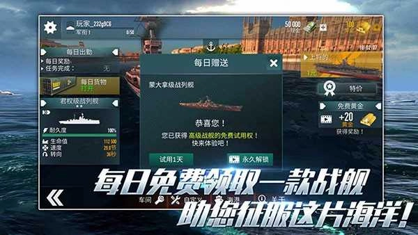 战争胜利后可以使用获得的金币升级或购买新的战舰,解锁更多新内容;