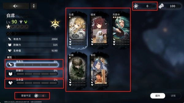 重点提示:左下角的成员属性能够借助玩法内获取的荣耀值来提升,从而增强对应成员的能力。