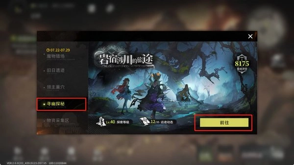 找到寻幽探秘入口,点击前往按钮开始冒险。