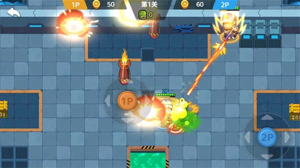 4、在游戏中石油两个角色的,因为我们选的是双人闯关,左边是1p右边则是2p操作区域;