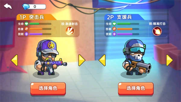 双人大作战2最新版2024如果你想体验一款射击闯关玩法的游戏,不妨来这款游戏当中尽情闯关吧!在这里我们可以操控角色收集资源,不断提升我们的战斗力,通过击败敌人提升我们的等级经验,每次升级到一定程度都可以随机解锁武器与天赋,最后与队友协同合作努力闯关吧!感兴趣的话快来试试看吧!