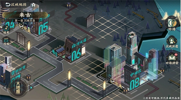 本次「破局测试」会开放1至4章的剧情事件与地图关卡。“外传”“区域派遣”以及“对局讲堂”这几个功能,将在完成指定的主线章节后解锁。