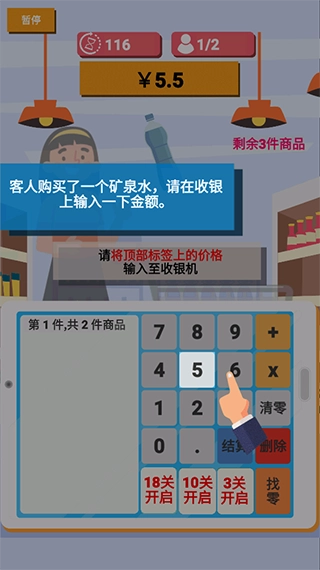 3、持续挑战自我,解锁新的商店类型和特殊道具,提升你的收银员等级,并在竞争中占据优势!
