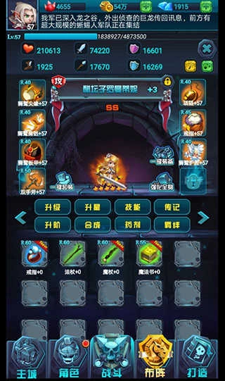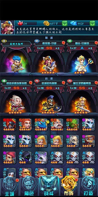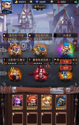 主角英雄同样能放在前排,虽然后期它的攻击力和主力输出比起来差不少,但防御力和血量很出色,能扛住敌人大量伤害。你可以点击主界面下方的英雄按钮查看自己的主角,接着点培养找到左下角的天赋按钮,把韧性相关的战斗天赋以及治疗、防御类技能都点满就行。