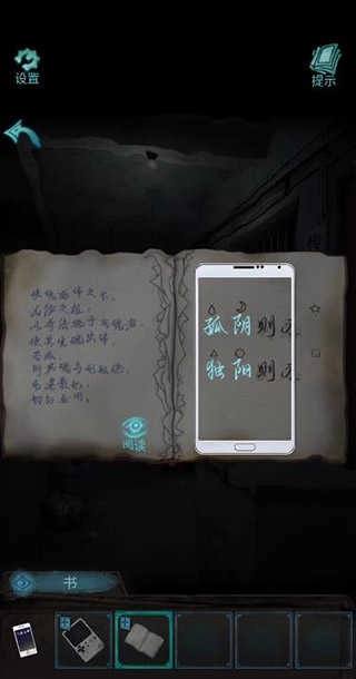 4、接下来会看到一本书,按照书中的提示,可以获得密码【阴生独、阳孤长】,成功开启锁。