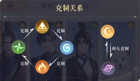 游戏里设有“水火风土阴阳”六种属性,它们彼此间存在克制关联:水克制火,火克制风,风克制地,地克制水,而阴与阳则相互克制。