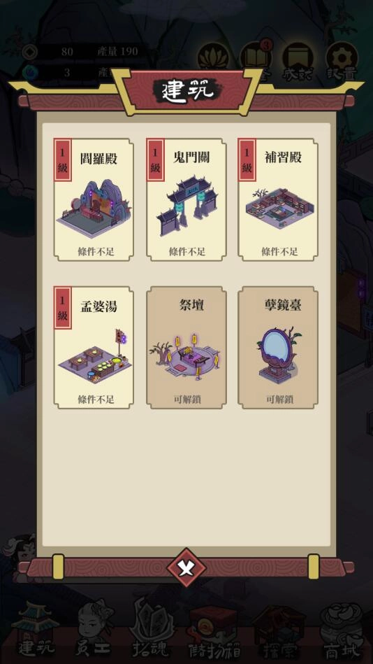 2、地府每天都会有不同数量的收益,玩家要努力的吸引更多的鬼魂过来;