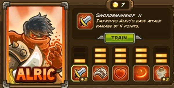 战士Alric是游戏里我们能免费使用的首个且唯一的英雄。他攻守兼备,技能表现也相当出色,是近战中足以独当一面的角色。等他的沙之勇士技能升至满级后,不妨考虑让他在火炮或弓箭塔的配合下单独镇守一路——这样在游戏初期能有效减轻多路敌人带来的经济压力。要是再搭配支援部队,加上英雄自身和召唤出的三个沙勇士,就能瞬间集结起六人战力,牢牢挡住敌人的进攻。