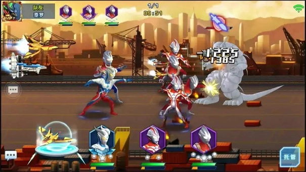 4、你也可以招募更多的奥特曼与你自己一起战斗,还可以释放组合技能。