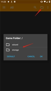 2、完成选择确认后,会进入SD卡的游戏查找界面,请您找到对应的游戏目录,直接运行游戏就可以了。