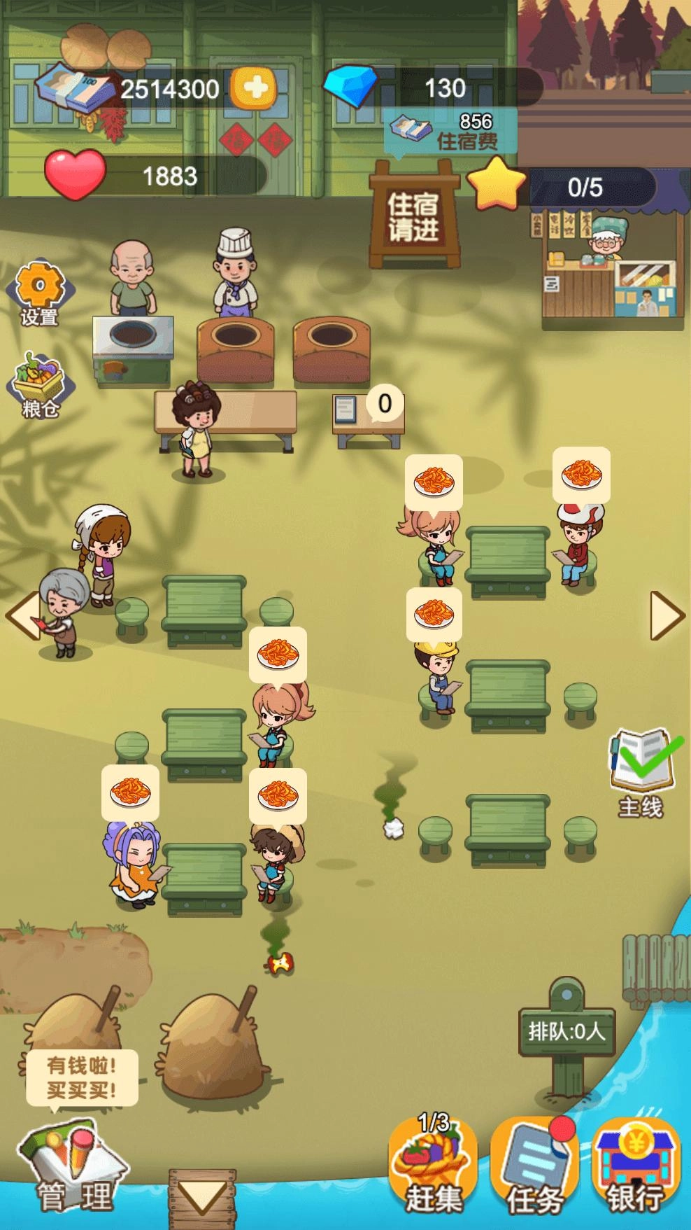1、你可以用你的金币购买更多的设施,提高你的服务质量。