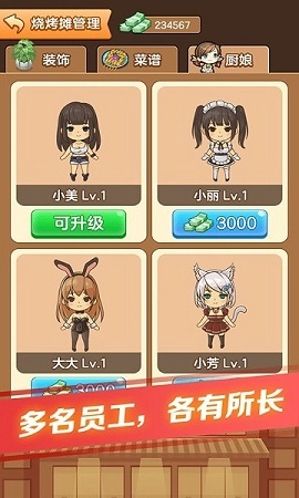 3、扩大玩家的烧烤摊位在游戏中,成为行业中最受欢迎的存在,美味的食物干净卫生。